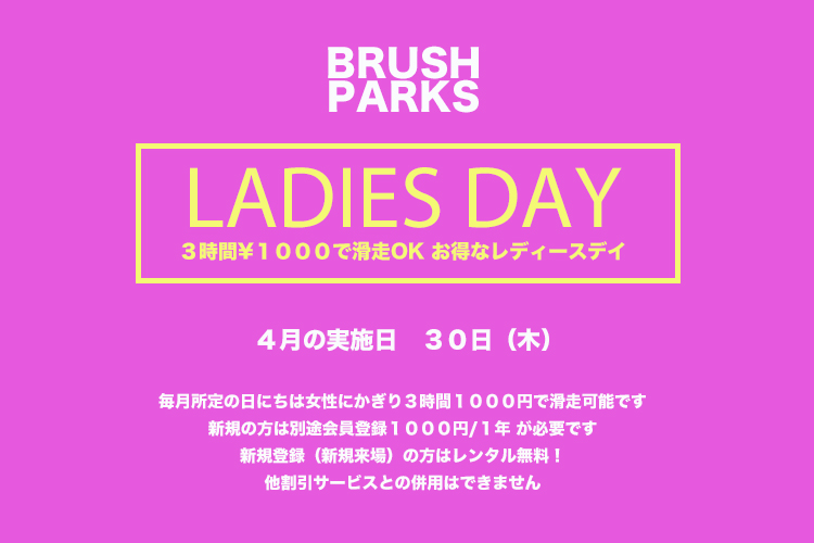 ブラッシュパークスでは滑走料金がお得なマンスリープランや